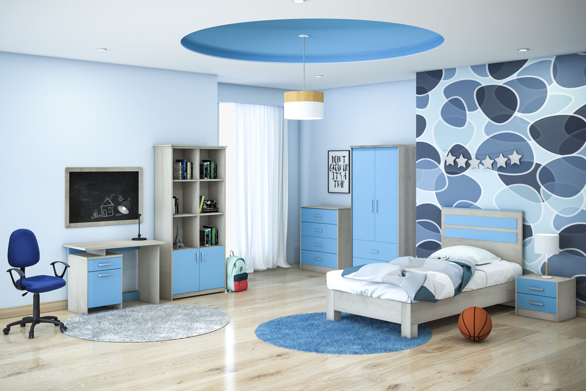Κομοδίνο παιδικό Looney με 2 συρτάρια χρώμα castillo-μπλε 47,5x40,5x40,5εκ
