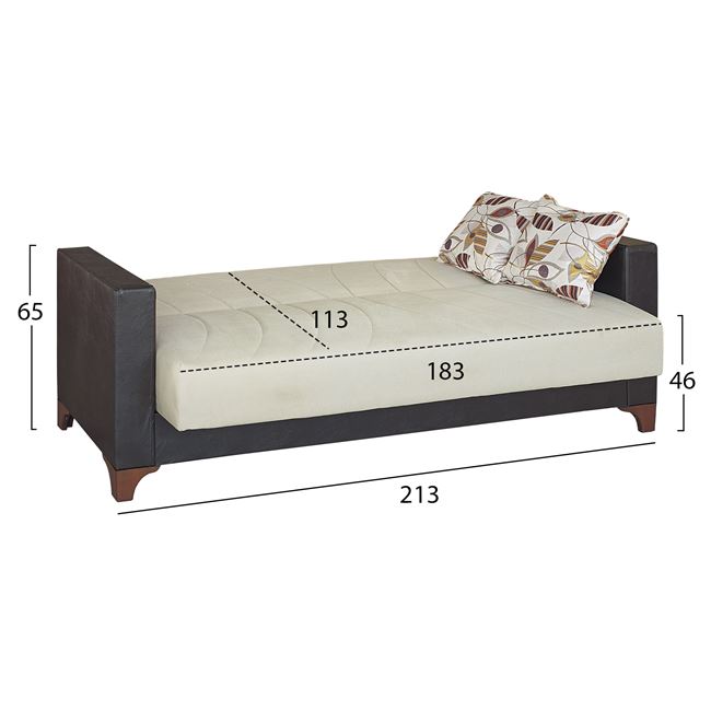 ΚΑΝΑΠΕΣ ΓΩΝΙΑ ΚΡΕΒΑΤΙ 3ΘΕΣΙΟΣ ΜΕ ΤΑΜΠΟΥΡΕ JANET HM3142.02 ΜΠΕΖ ΜΕ PU ΚΑΦΕ