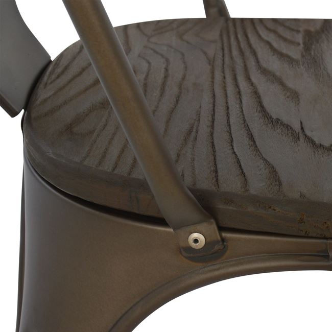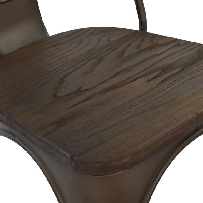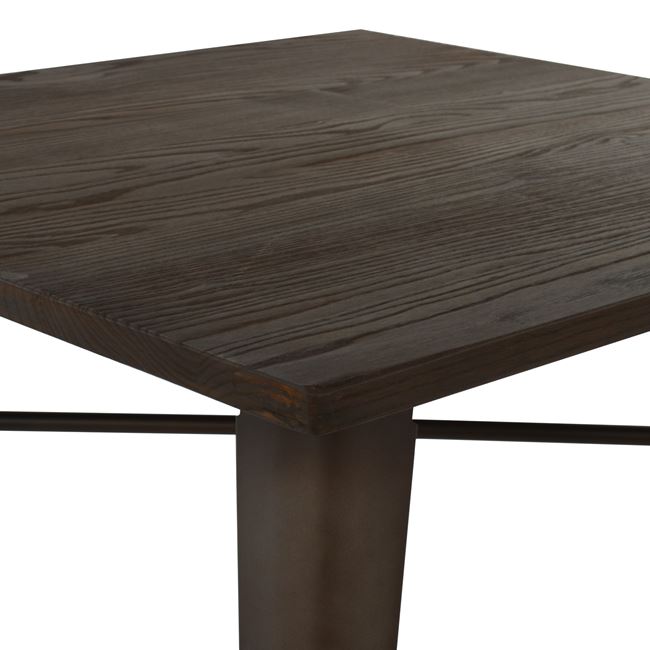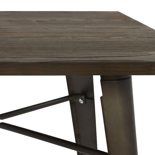 με επιφάνεια τραπεζιού και καθίσματος καρέκλας από ξύλο σε απόχρωση σκούρο καφέ.