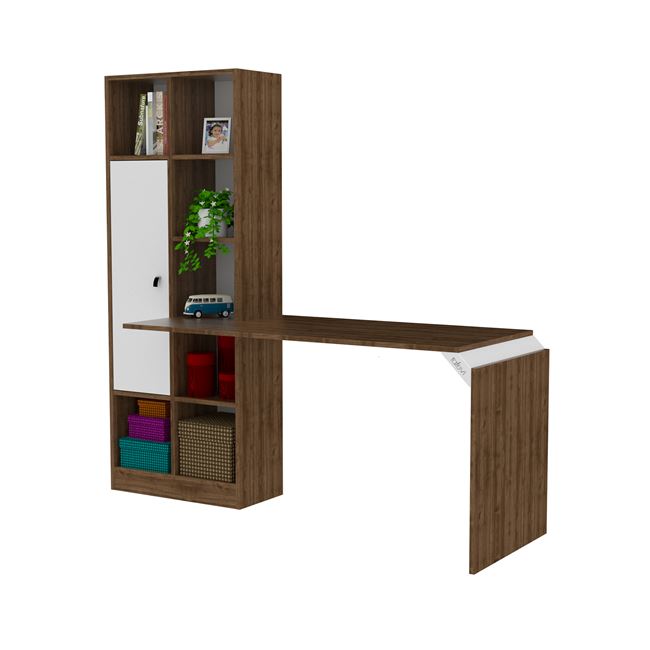 Γραφείο με βιβλιοθήκη FB92242.02 σε Καρυδί με λευκές λεπτομέρειες.