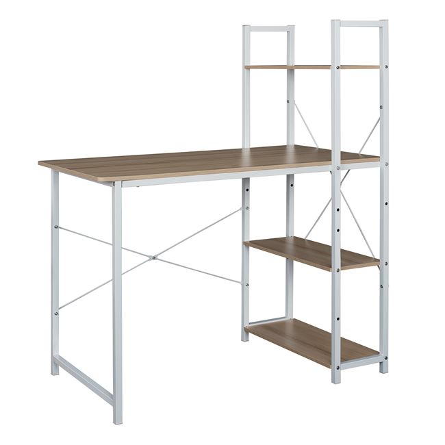 Γραφείο υπολογιστή κατασκευασμένο από μεταλλικό λευκό σκελετό και επιφάνεια από μελαμίνη σε φυσική απόχρωση οξιάς.