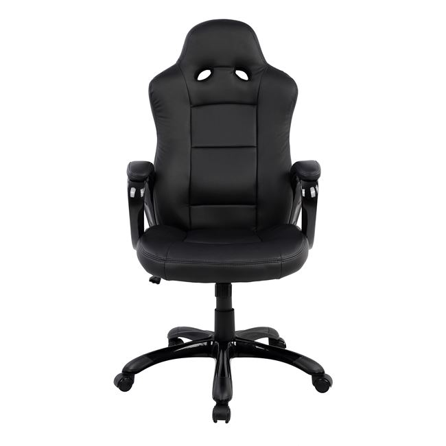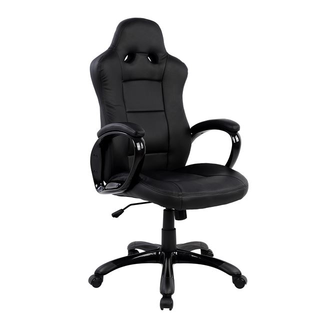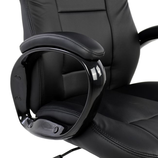 Καρέκλα γραφείου με μπράτσα, τύπου BUCKET σε μαύρο χρώμα από υλικό PU.