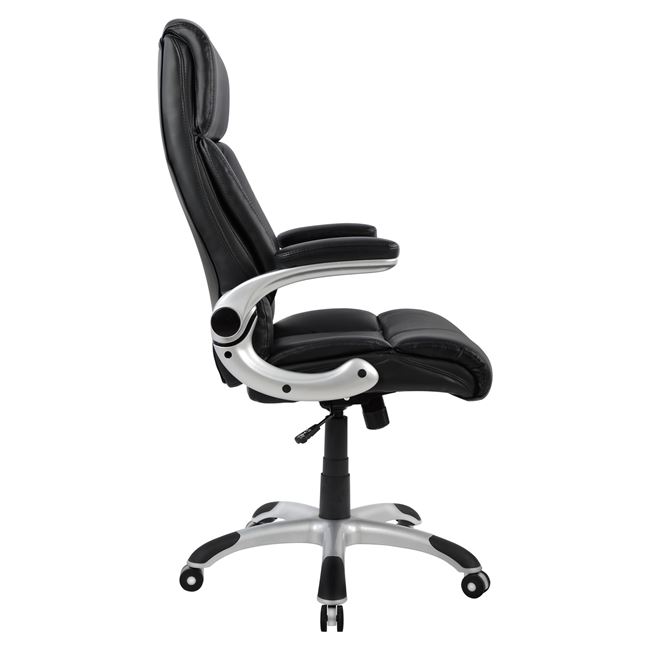 Καρέκλα γραφείου με μπράτσα, ροδάκια και αμορτισέρ σε shining black χρώμα από PU υψηλής ποιότητας. Η καρέκλα διαθέτει ιδιαίτερα ψηλή πλάτη καμπύλες για να κρατάει τη μέση και μαξιλάρι για να στηρίζει το λαιμό και το κεφάλι.