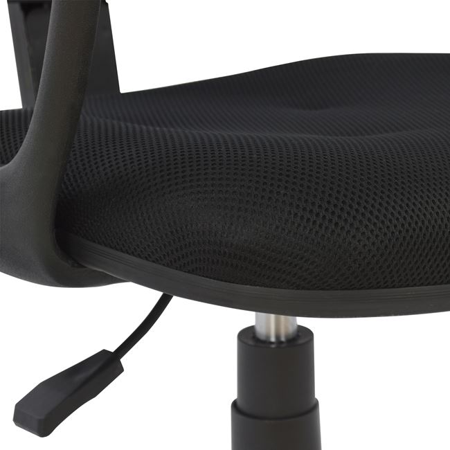 Το κύριο χαρακτηριστικό της καρέκλας είναι το ύφασμα της πλάτης που είναι mesh, δηλαδή διάτρητο. Αυτό σημαίνει ότι αφήνει την πλάτη να αναπνέει και να μην ιδρώνει προσφέροντας άνεση για πολύωρη χρήση.