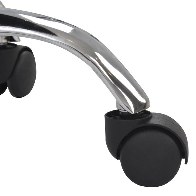 Τέλος, τα πόδια καταλήγουν στους μαύρους τροχίσκους της καρέκλας με λευκή ρίγα που είναι επίσης από ενισχυμένο πολυαιθυλένιο και επιφάνεια κύλισης από μαλακή πολυουρεθάνη για αθόρυβη κύλιση και ταυτόχρονα προστασία του πατώματος. Η σύνδεση με το «αστέρι» της βάσης γίνεται με πείρους από χάλυβα μήκους 2 εκατοστών.