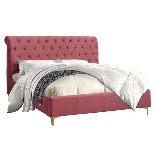 Η επένδυση σε ολόκληρο το κρεβάτι έχει γίνει από βελούδινο ύφασμα υψηλής ποιότητας, χαρίζοντας ελκυστική όψη και μια εκλεπτυσμένη γοητεία στην διακόσμηση του υπνοδωματίου. Το βελούδο είναι το ύφασμα που δεν μπορεί να αφήσει κανέναν ασυγκίνητο! Είτε καλύπτει μικρές είτε μεγάλες επιφάνειες, δεν μπορεί παρά να κάνει την παρουσία του αισθητή στο χώρο και να μαγνητίσει τα βλέμματα. Το βελούδο είναι ένα ύφασμα που αγαπήθηκε ιδιαιτέρως από τους βασιλείς και τους αυτοκράτορες των περασμένων αιώνων, με αποτέλεσμα να γίνει συνώνυμο της πολυτέλειας και της αίγλης. Έχει κατακλύσει τις βιτρίνες των μεγαλύτερων καταστημάτων και αποτελεί μία από τις πιο αγαπημένες επιλογές των πιο επώνυμων διακοσμητών παγκοσμίως. Πρόκειται για ένα ύφασμα απαλό, χαλαρό, απολαυστικό και φινετσάτο που είναι αδύνατον να του αντισταθεί κάποιος. Το θετικό είναι ότι μπορεί να εναρμονιστεί εύκολα με κάθε είδος διακόσμησης, προσδίδοντας στο χώρο φινέτσα και καλαισθησία.