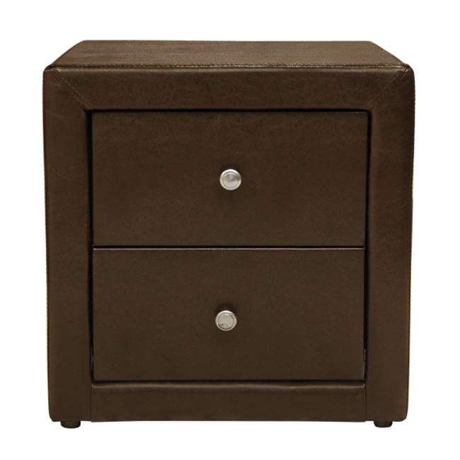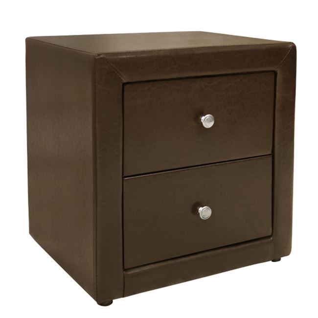 Κομοδίνο επενδυμένο με τεχνόδερμα, σε καφέ χρώμα.