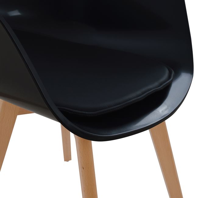 Κάθισμα από υψηλής ποιότητας πολυπροπιλενίου με δερμάτινο PU μαξιλαράκι σε μαύρο χρώμα.