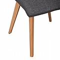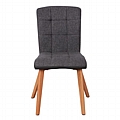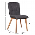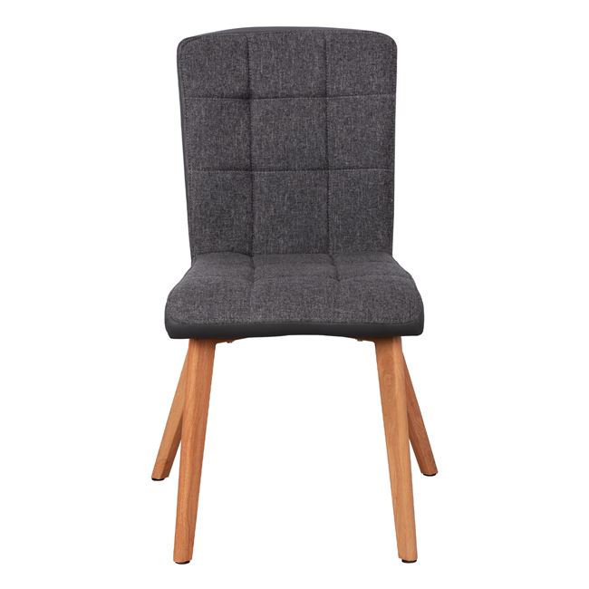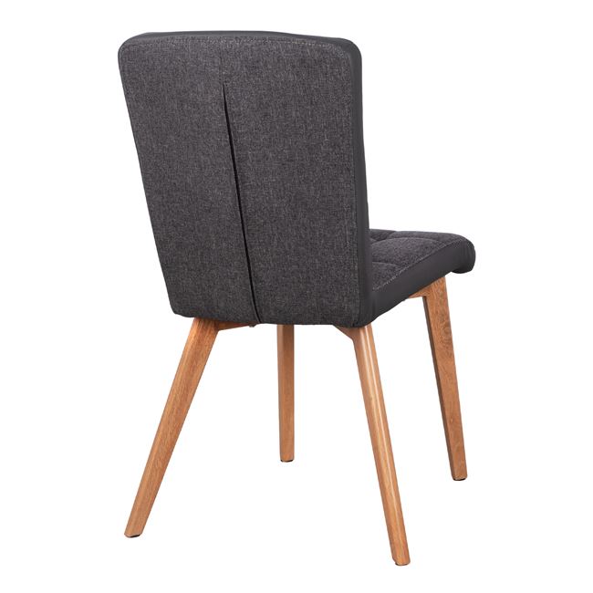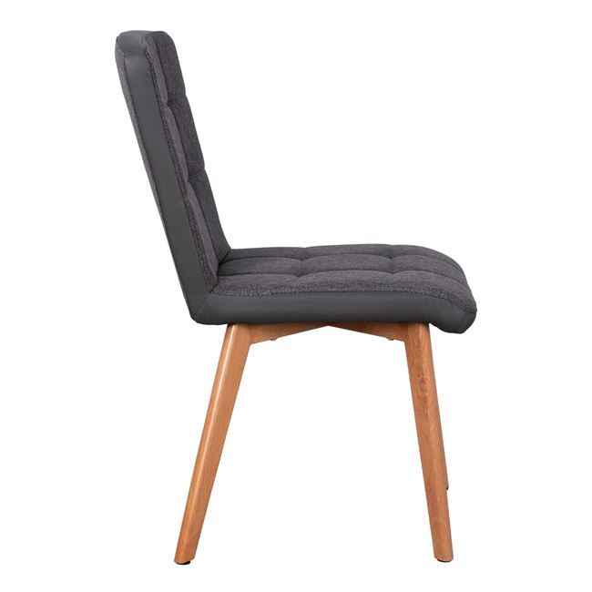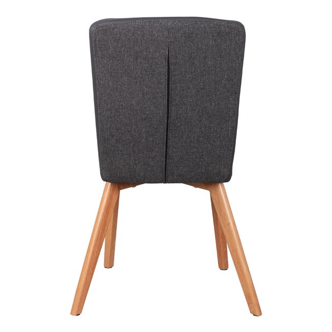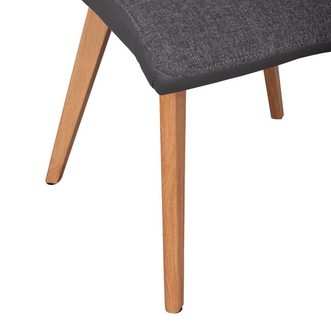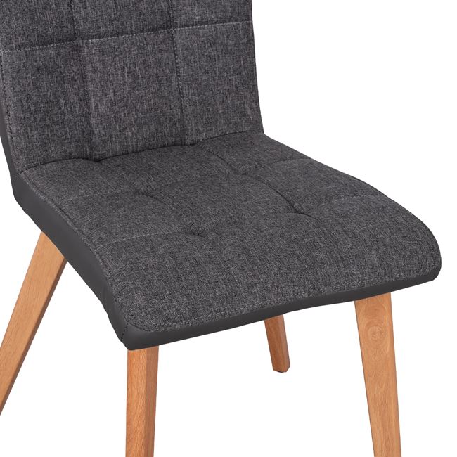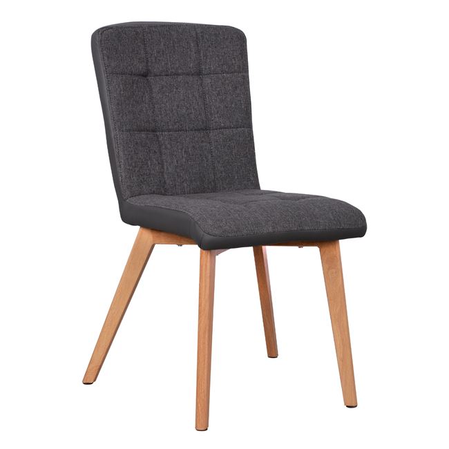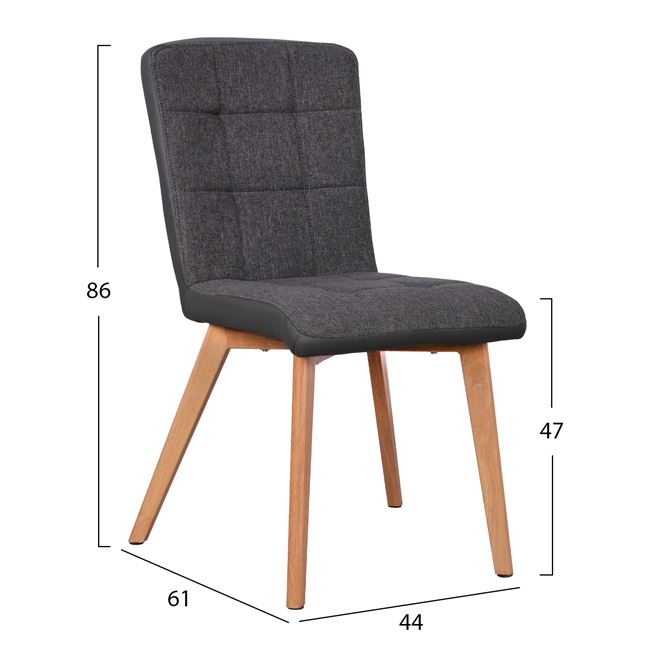 Η κατασκευή της καρέκλας είναι από μέταλλο ενώ το κάθισμα της είναι επενδυμένο με ύφασμα σε γκρι απόχρωση εμπρός και γκρι τεχνόδερμα υψηλής ποιότητας. Τα πόδια είναι μεταλλικά, βαμμένα στο φυσικό χρώμα του ξύλου για μεγαλύτερη αντοχή.