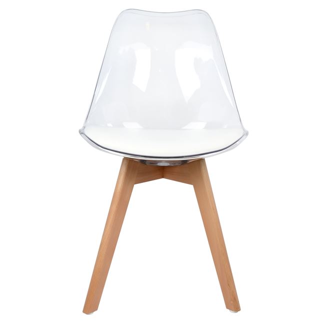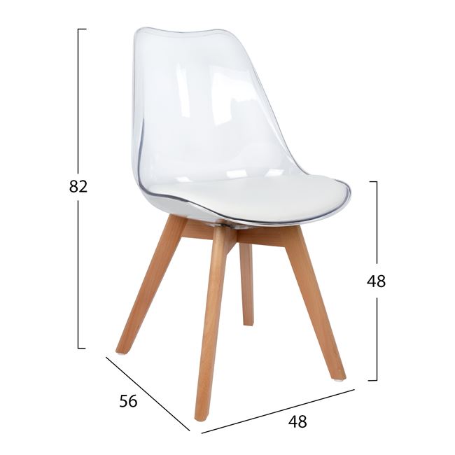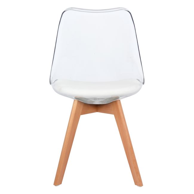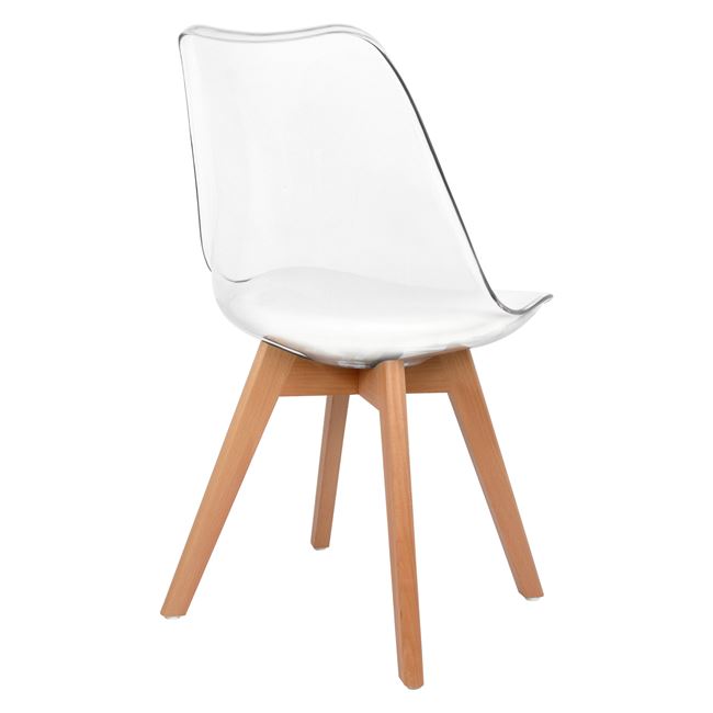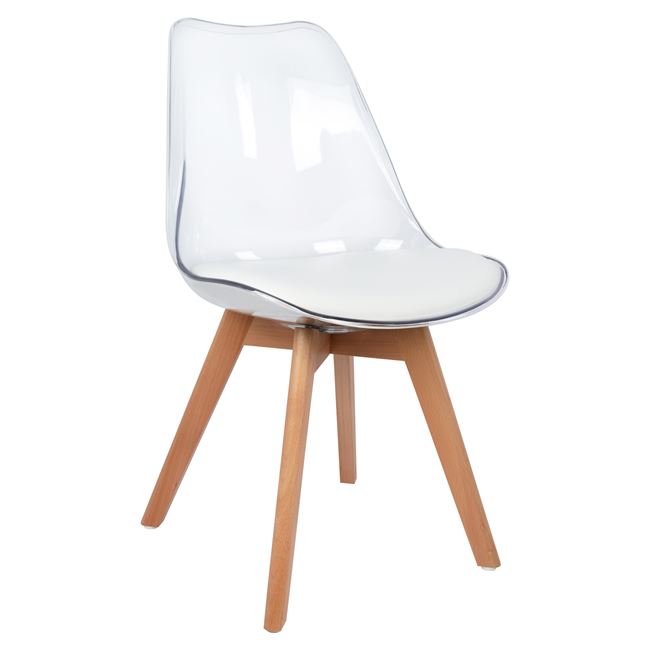 Μία μοντέρνα καρέκλα σε έναν άψογο συνδιασμό ξύλου-ακρυλικού και τεχνοδέρματος για να αναδείξει κάθε γωνία του σπιτίου σας ή του επαγγελματικού σας χώρου.