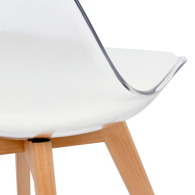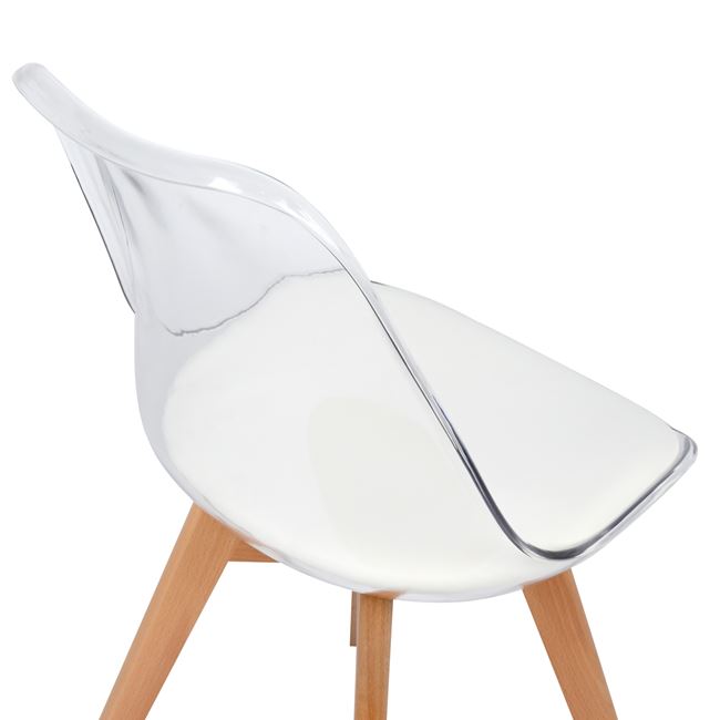 Κάθισμα:Υψηλής ποιότητας διάφανου ακρυλικού με δερμάτινο PU μαξιλαράκι σε λευκό χρώμα.