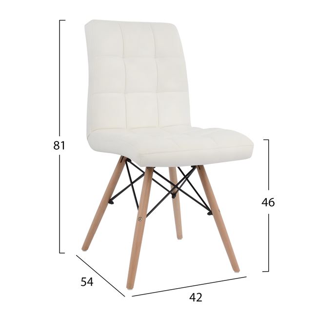 Η κατασκευή της είναι από ξύλινα πόδια και λευκή δερματίνη PU.