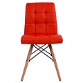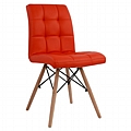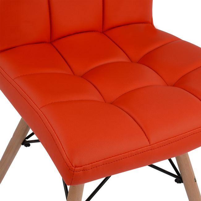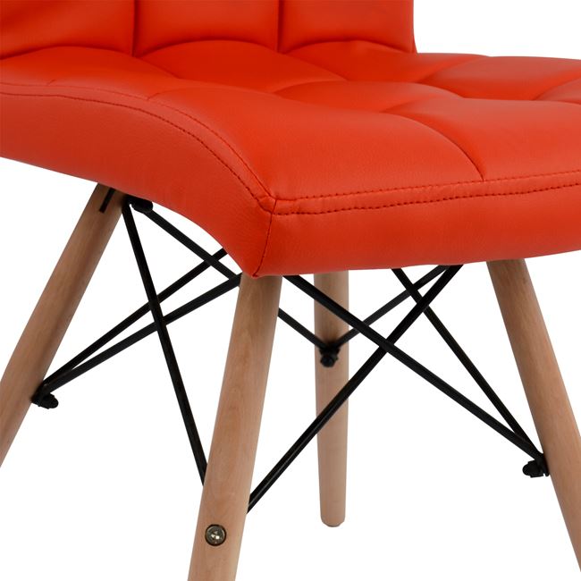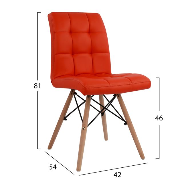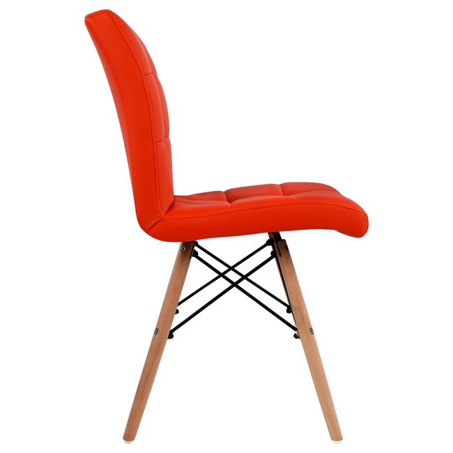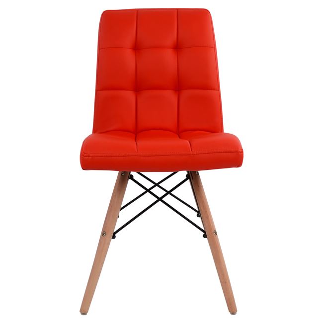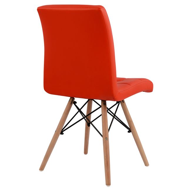 Η κατασκευή της είναι από ξύλινα ανοιχτόχρωμα πόδια και κόκκινη δερματίνη PU.