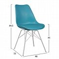 Υψηλής ποιότητας κάθισμα από πολυπροπυλένιο με δερμάτινο PU μαξιλαράκι σε γαλάζιο χρώμα και μεταλλικό σκελετό και πόδια σε λευκό χρώμα.