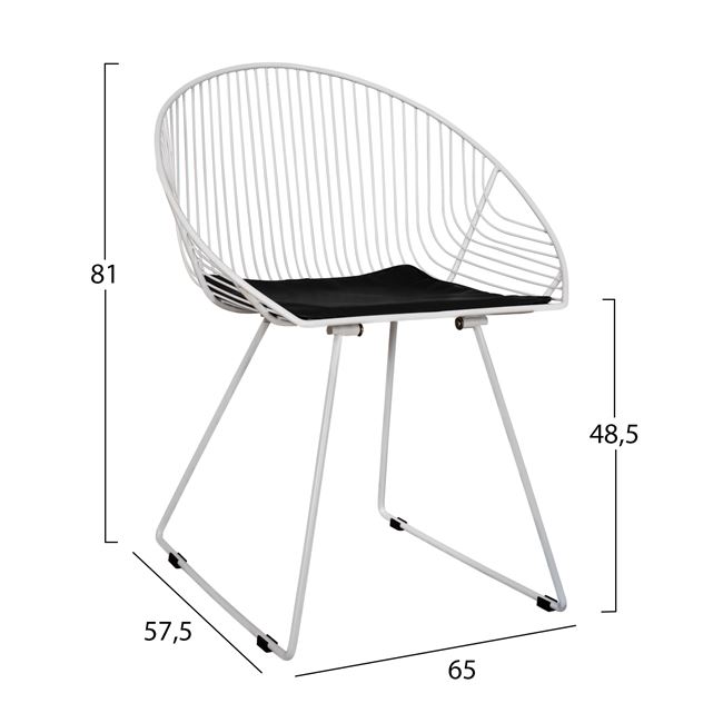 Καρέκλα μεταλλική CURVE, σε λευκό χρώμα, με μαξιλάρι, σε μοντέρνο και μοναδικό design.