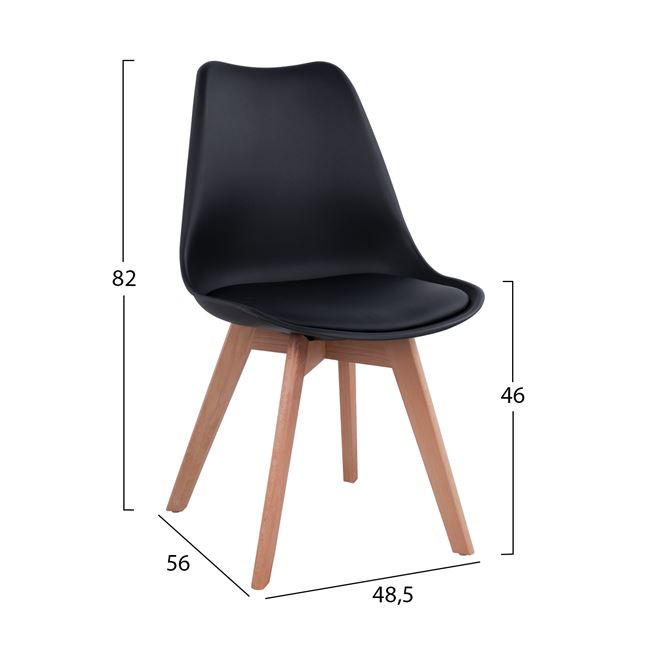 Κάθισμα: Υψηλής ποιότητας πολυπροπυλένιο με δερμάτινο PU μαξιλαράκι σε μαύρο χρώμα.