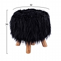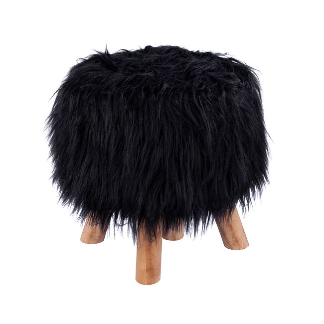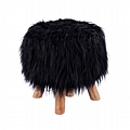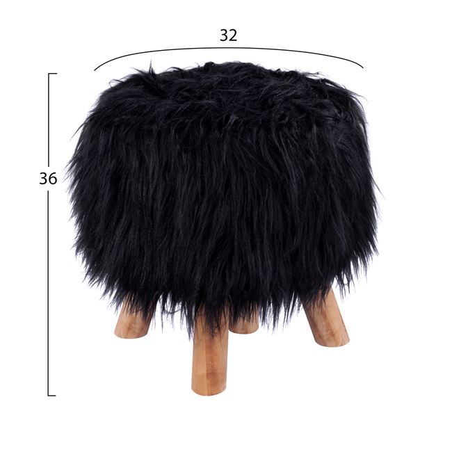 Σκαμπό FB98410.01 από γούνα σε μαύρη απόχρωση και ξύλινα πόδια σε φυσικό χρώμα.