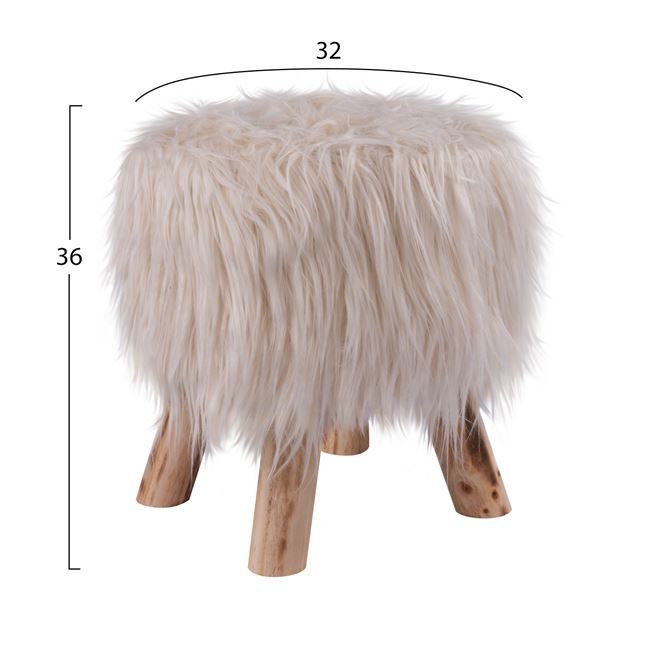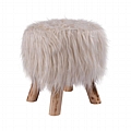 Σκαμπό FB98410.02 από γούνα σε μπεζ απόχρωση και ξύλινα πόδια σε φυσικό χρώμα.