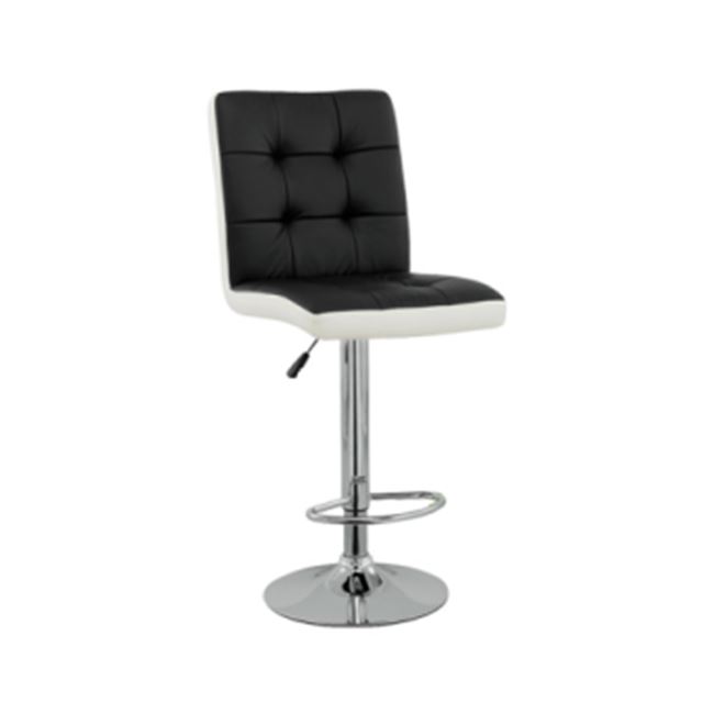 Σκαμπώ μπάρ κουζίνας με πλάτη καπιτονέ & αμορτισέρ με βάση χρωμίου επενδεδυμένο με μαύρη-άσπρη δερματίνη.