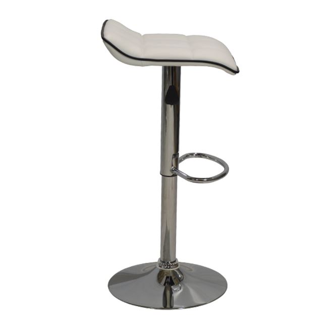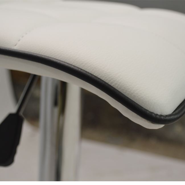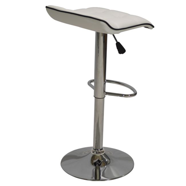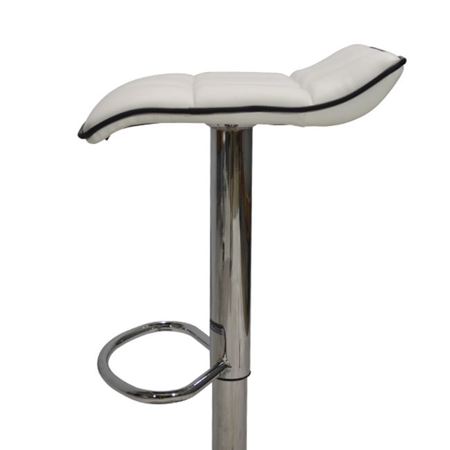 Σκαμπώ μπάρ κουζίνας με αμορτισέρ και βάση χρωμίου.Το κάθισμα είναι απο άσπρη δερματίνη με μαύρο ρέλι περιμετρικά