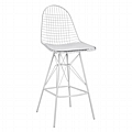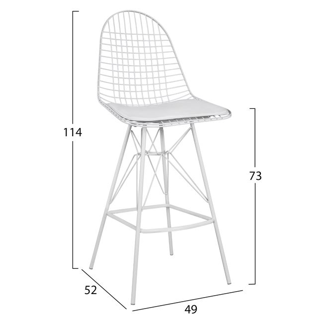 Το σκαμπό είναι κατασκευασμένο από μέταλλο σε λευκή απόχρωση, και διαθέτει μαξιλαράκι από τεχνόδερμα σε λευκό χρώμα.