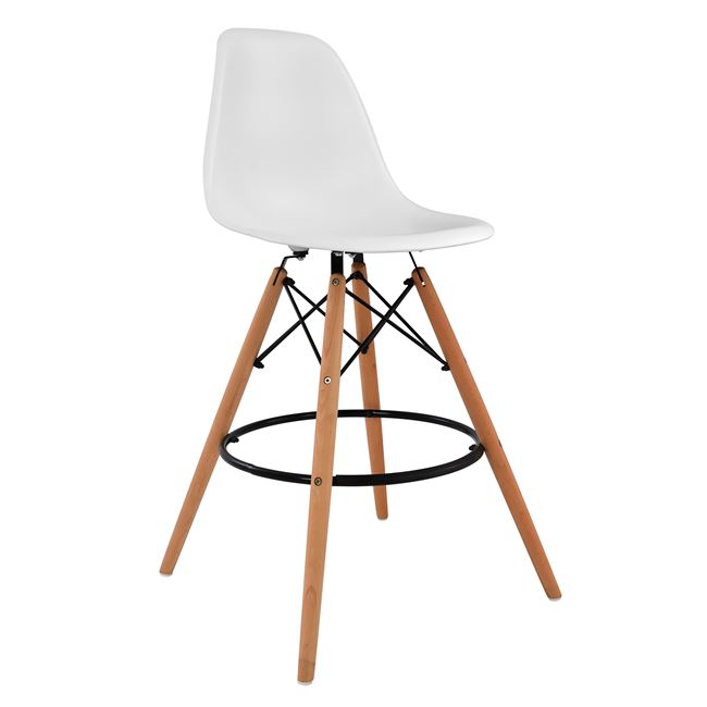 Το σκαμπό RENATA είναι κατασκευασμένο από ξύλο σε φυσική και πολυπροπυλένιο σε λευκή απόχρωση,