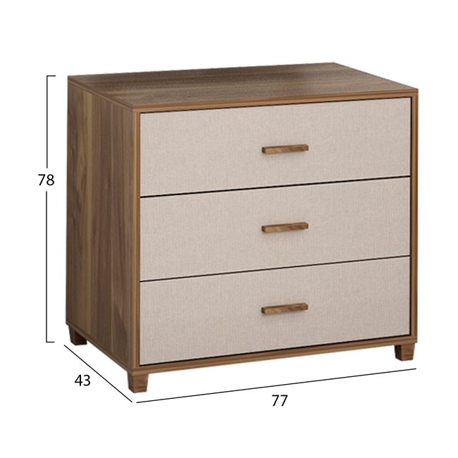 Συρταριέρα μελαμίνης με τρία συρτάρια από την σειρά "KOTON", σε καρυδί και εκρού απόχρωση.