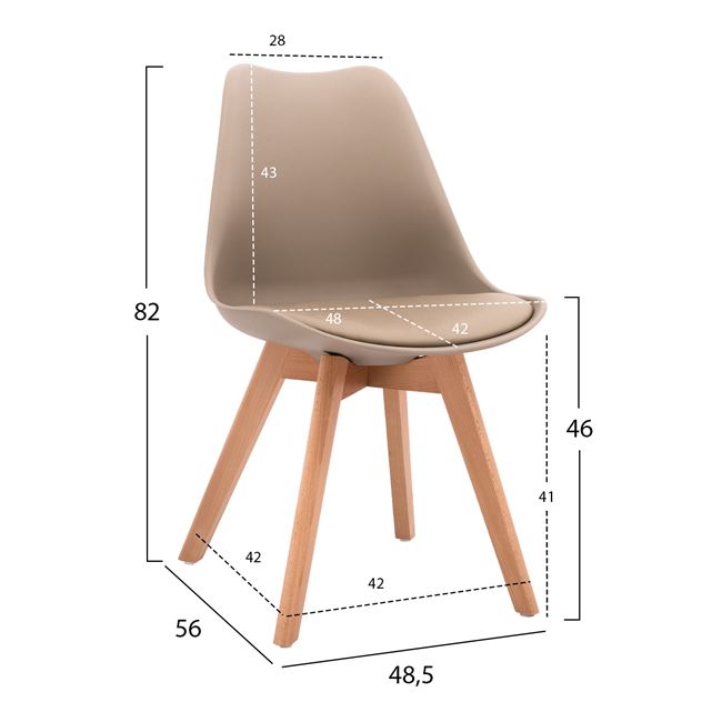 Κάθισμα: Υψηλής ποιότητας πολυπροπυλένιο με δερμάτινο PU μαξιλαράκι σε απόχρωση καπουτσίνο.