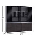 Διαθέτει έξι ντουλάπια με εσωτερικό ράφι στο κάτω μέρος, δύο ντουλάπια με τζάμι στο πάνω μέρος με δύο εσωτερικά ράφια το καθένα και δέκα ανοιχτούς αποθηκευτικούς χώρους.