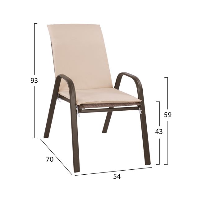 Πολυθρόνα εξωτερικού χώρου μεταλλική καφέ με textilene 2x1 μεγάλης αντοχής σε ήλιο και βροχή,