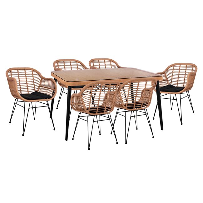 ΣΕΤ 7ΤΜΧ WICKER ΜΕ ΤΡΑΠΕΖΙ 160X90X78Υ ΜΠΕΖ & ΜΑΥΡΟ ΧΡΩΜΑ FB910498