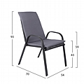 'Εξι πολυθρόνες εξωτερικού χώρου από μεταλλικό σκελετό σε γκρι χρώμα με textilene 2x1 μεγάλης αντοχής σε ήλιο και βροχή, με αδιάβροχο μαξιλάρι σε γκρι απόχρωση.