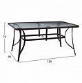 Ένα τραπέζι τραπεζαρίας μεταλλικό εξωτερικού χώρου σε καφέ απόχρωση με ενσωματωμένο τζάμι ασφαλείας (secure).