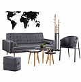 Σετ 5 τμχ περιέχει καναπέ κρεβάτι, τραπεζάκια ζιγκόν, πολυθρόνα, καλόγερο, σκαμπό & διακοσμητικό τοίχου.