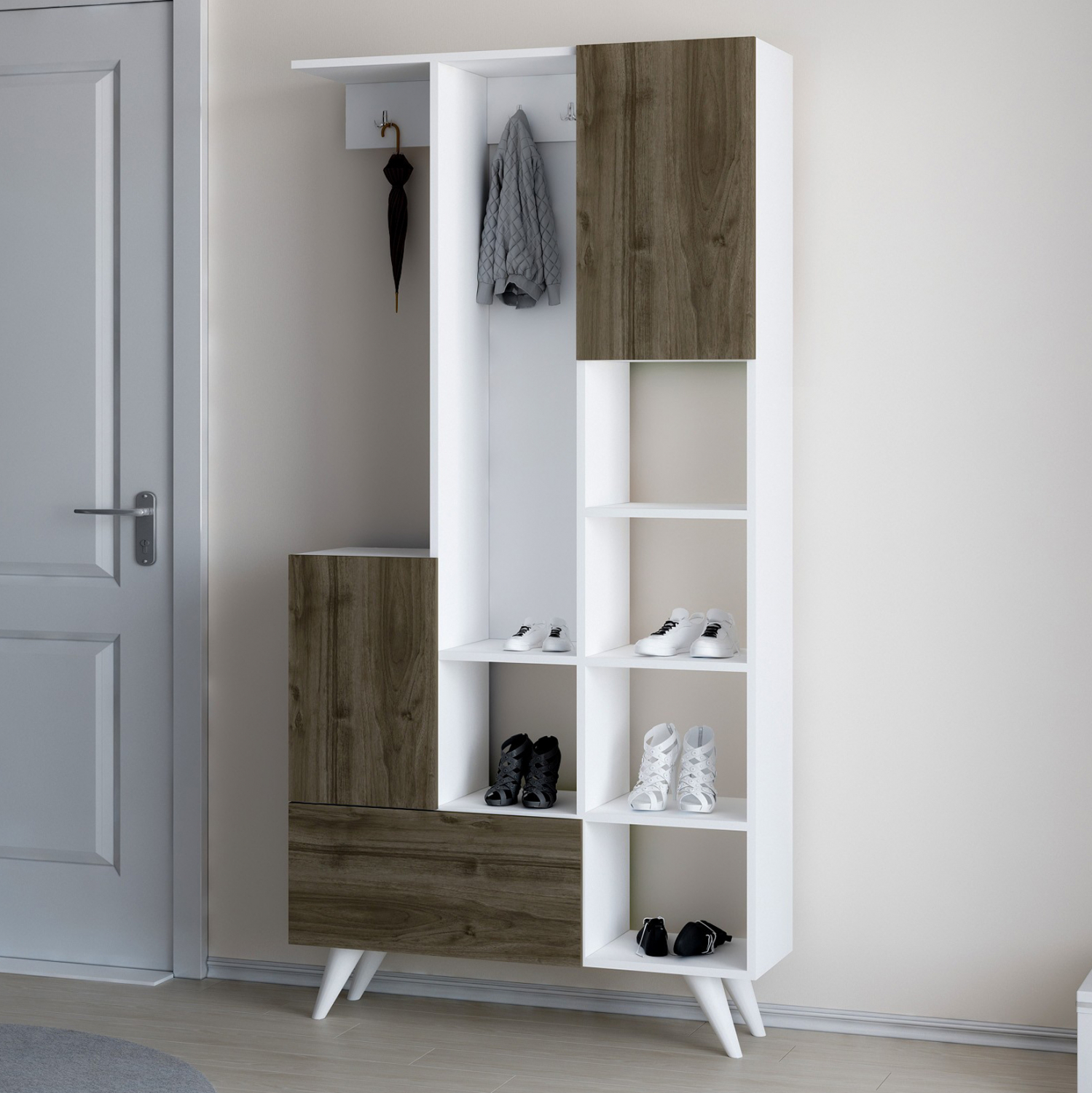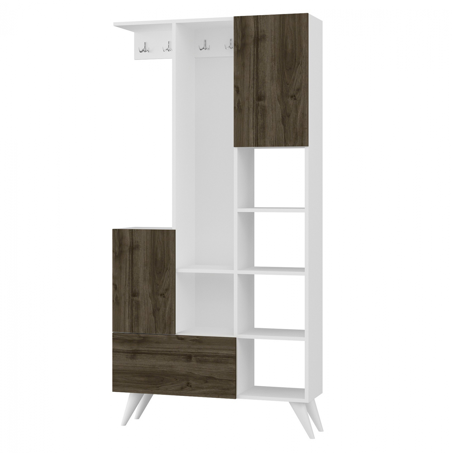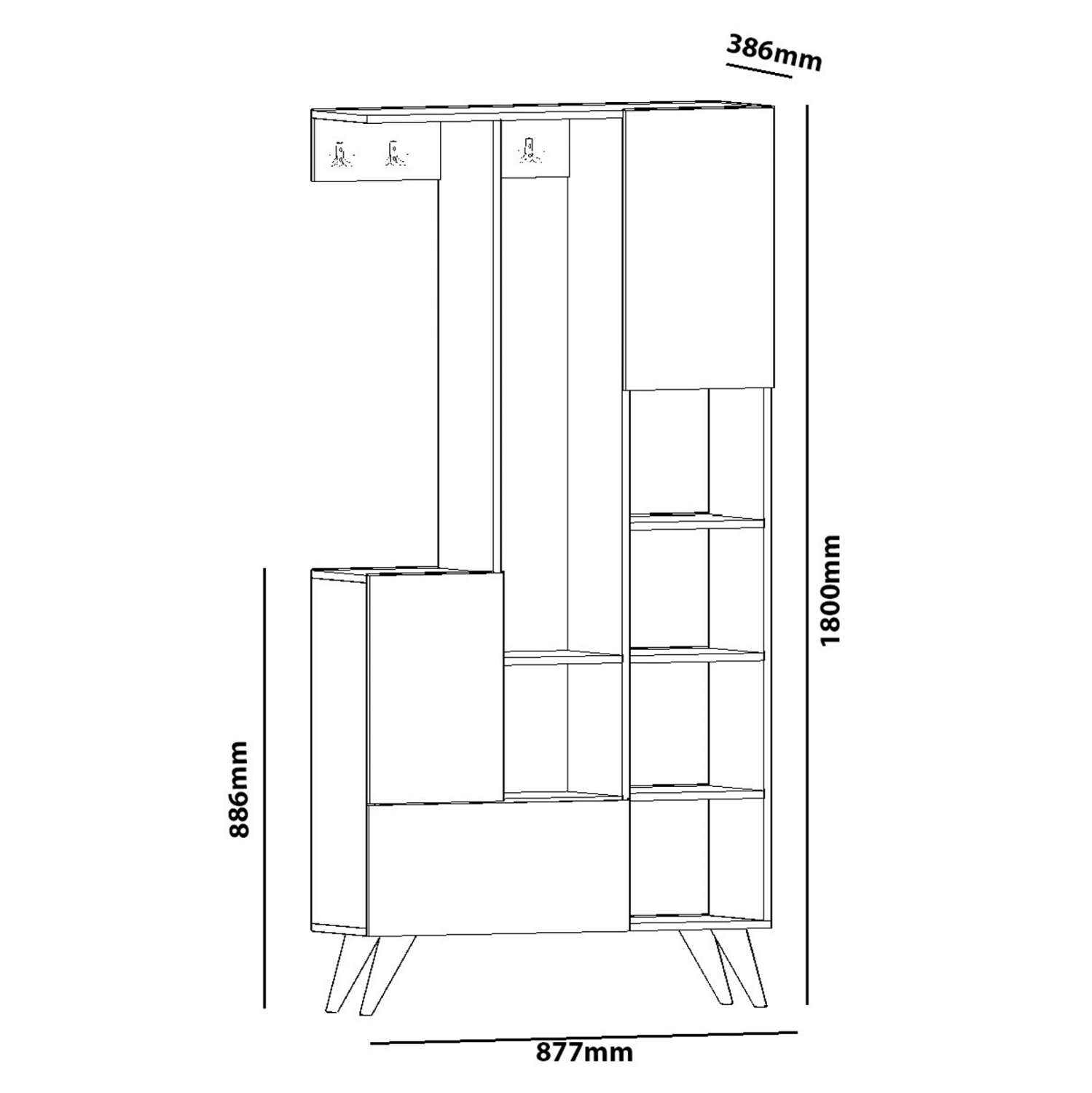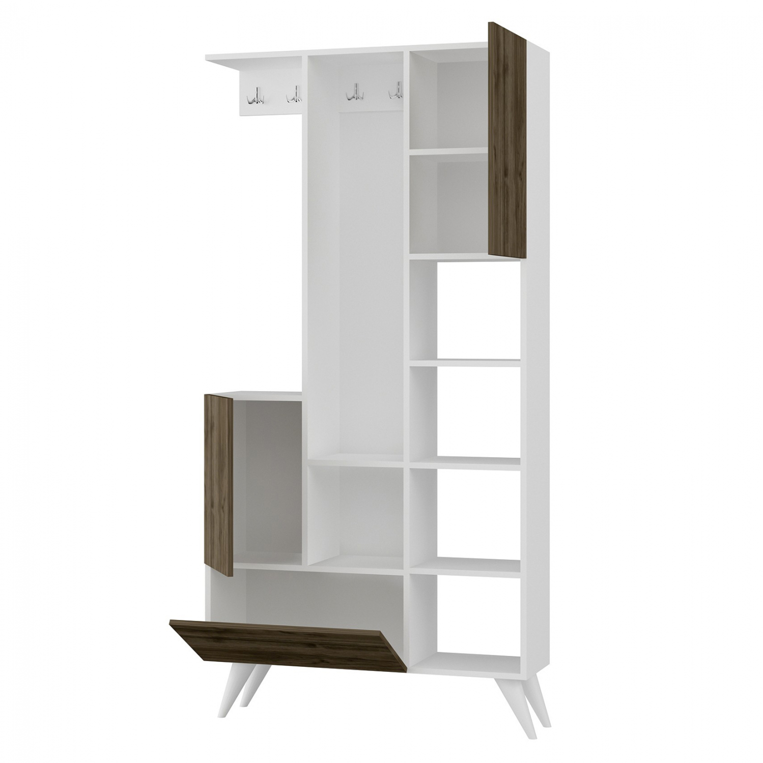 Διαθέτει τρία ντουλάπια το ένα με εσωτερικό ράφι, έξι ανοιχτούς αποθηκευτικούς χώρους και τέσσερα άγκιστρα για να κρεμάσετε τα πανωφόρια σας.