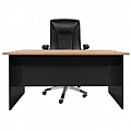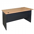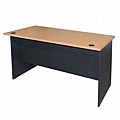 Επιφάνεια εργασίας από μελαμίνη πάχους 25mm στο χρώμα οξιάς, με δύο εισόδους καλωδίων πάνω από τα πόδια. Πόδια μελαμίνης πάχους 18mm σε χρώμα γκρί.