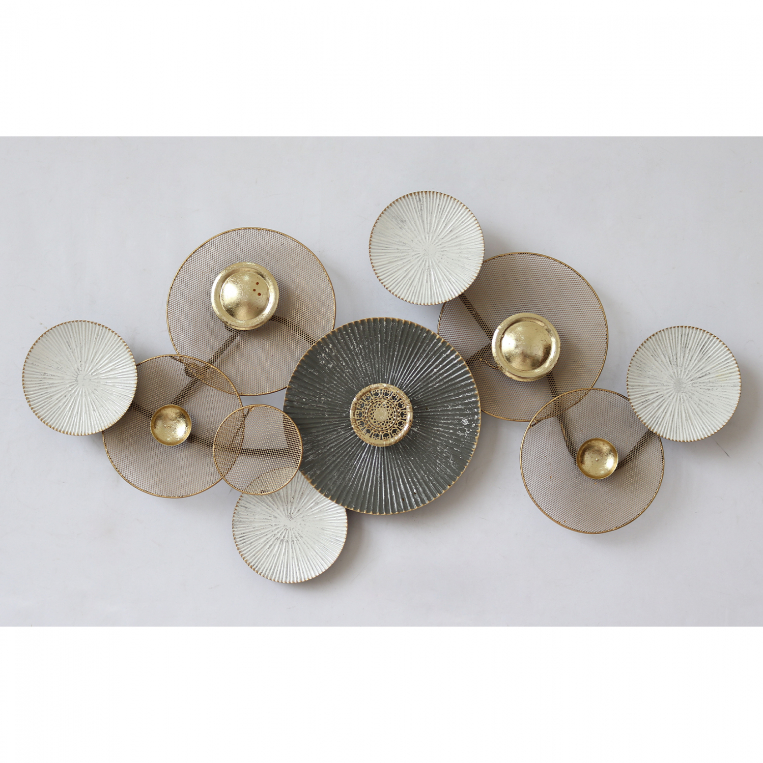 Μεταλλικό διακοσμητικό τοίχου σε χρυσή και λευκή απόχρωση με ανθρακί λεπτομέρεια.