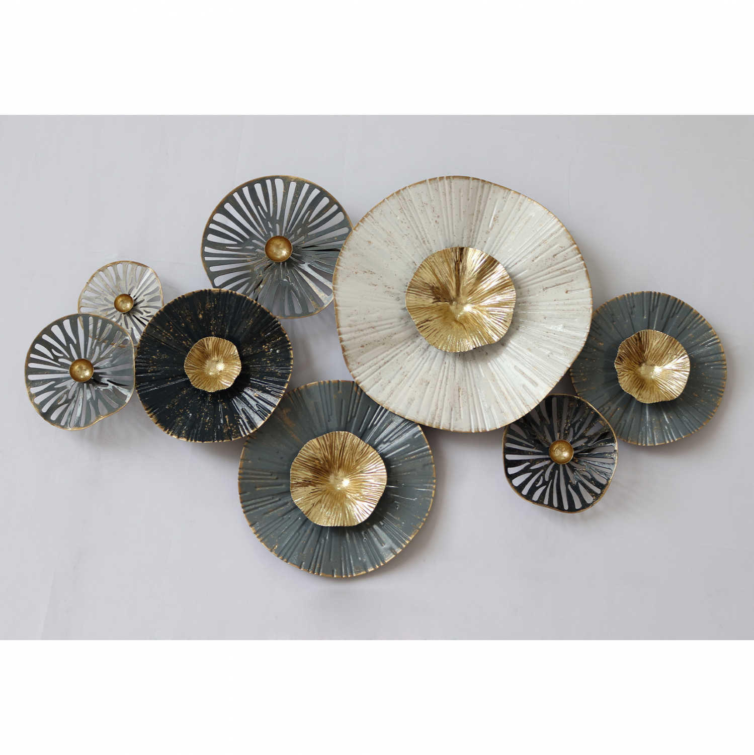 Μεταλλικό διακοσμητικό τοίχου σε γκρι και εκρού απόχρωση με χρυσές και ανθρακί λεπτομέρειες.