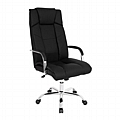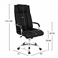 Διευθυντική καρέκλα γραφείου σε μαύρο χρώμα. Μια «πλούσια» καρέκλα γραφείου με μπράτσα με ελαφριά κλίση και επενδυμένα με μια στρώση αφρολέξ σε PU δέρμα. Η πλάτη είναι πολύ ψηλή με πλούσια στρώση από αφρώδη υλικά και έξτρα ενσωματωμένο μαξιλάρι για το κεφάλι για άνεση κατά την χρήση και υποστηρίζει ολόκληρο τον κορμό σας, ενώ είναι επενδυμένη με υψηλής ποιότητας PU δέρμα , όπως επίσης και το φαρδύ και αναπαυτικό κάθισμα με την εξτρά αναπαυτική επιφάνεια. Η βάση είναι χρωμιωμένη σε σχήμα «αστέρι» με κυρτά πόδια και μαύρα ροδάκια.