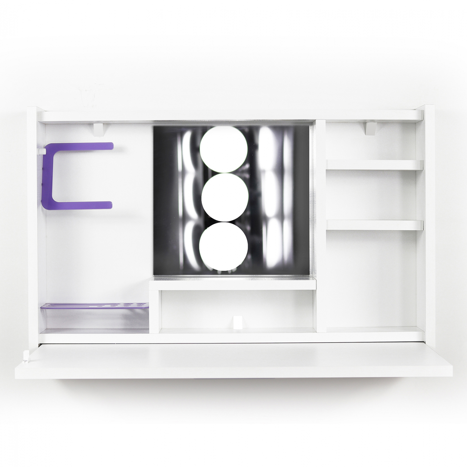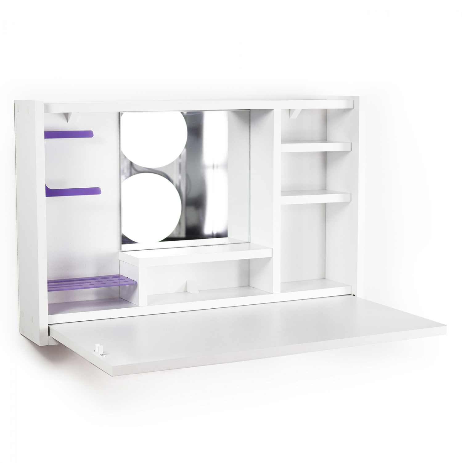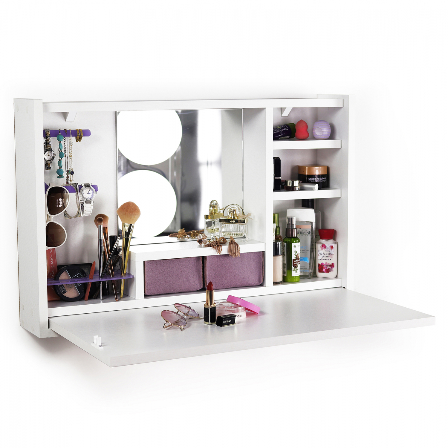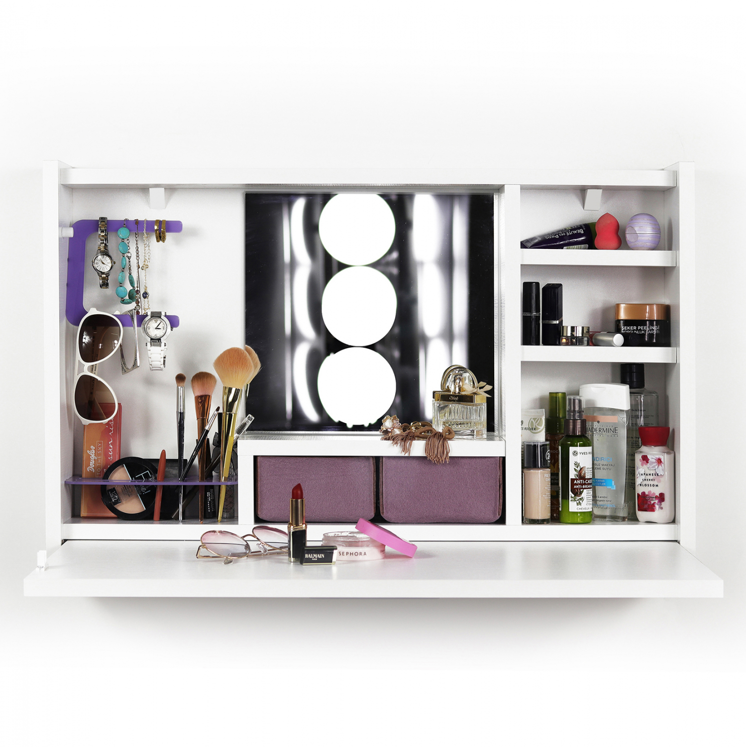 Διαθέτει ένα ντουλάπι με εσωτερικά ραφάκια και θήκες αποθήκευσης των κοσμημάτων και καλλυντικών σας.