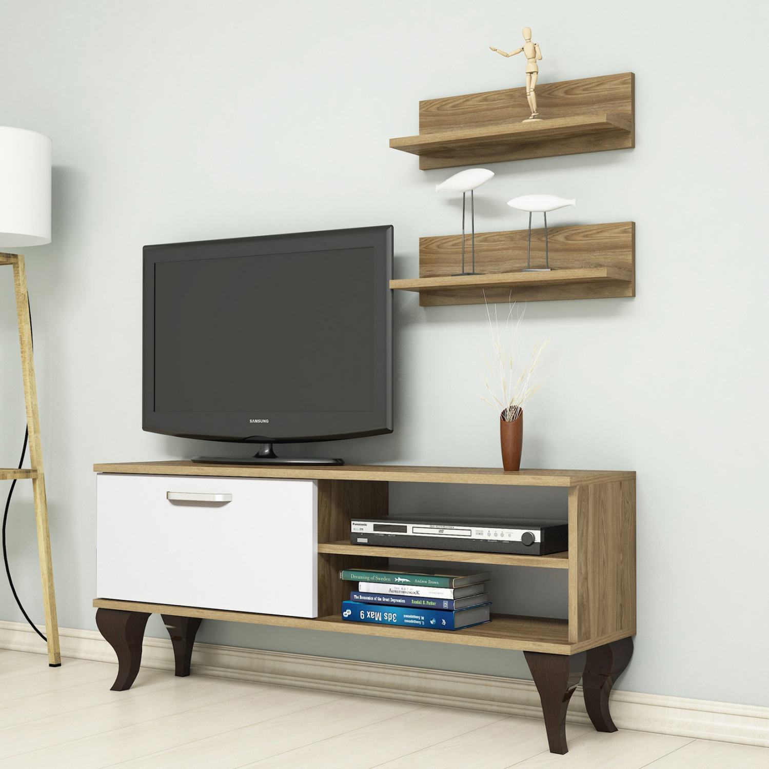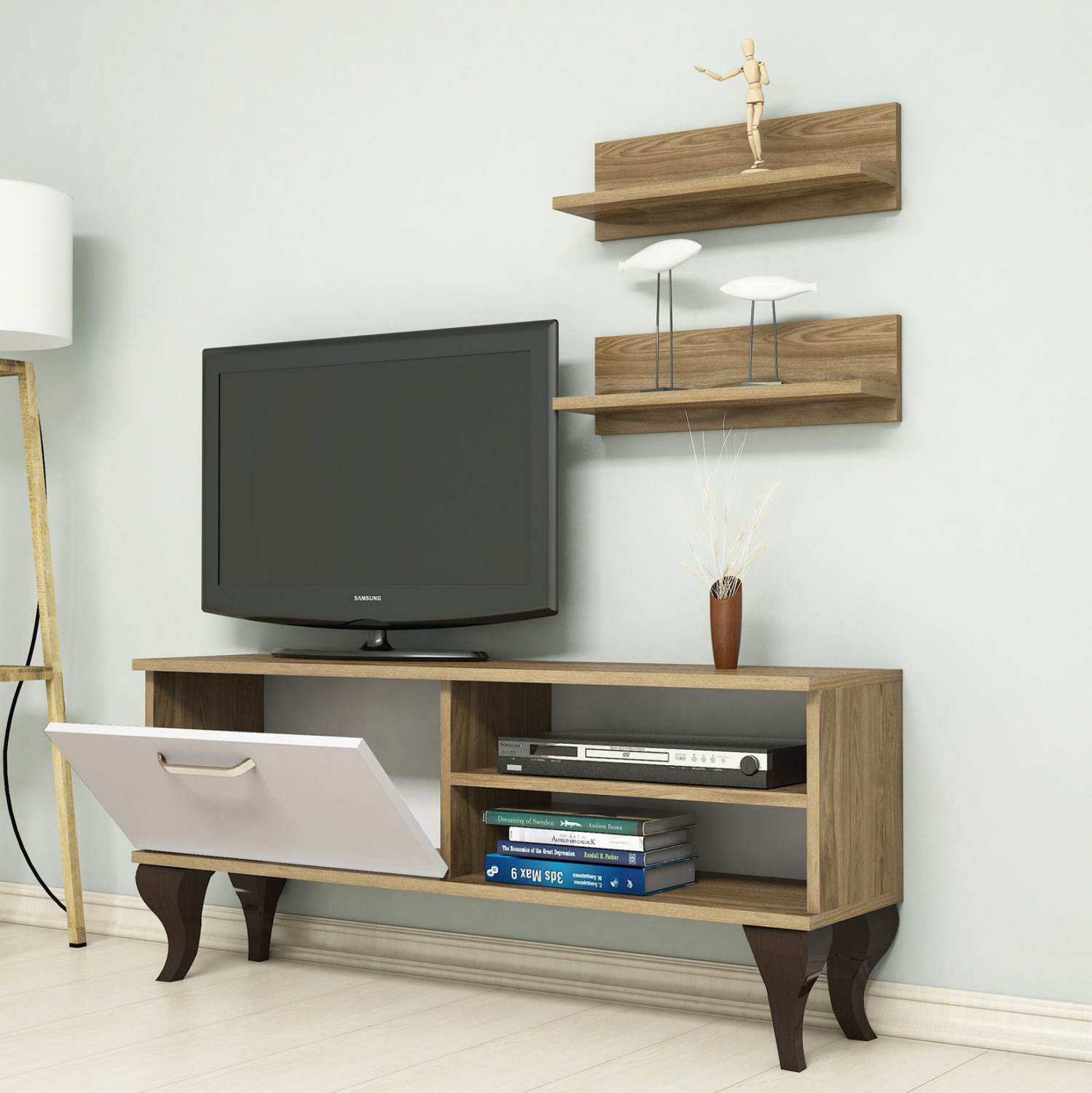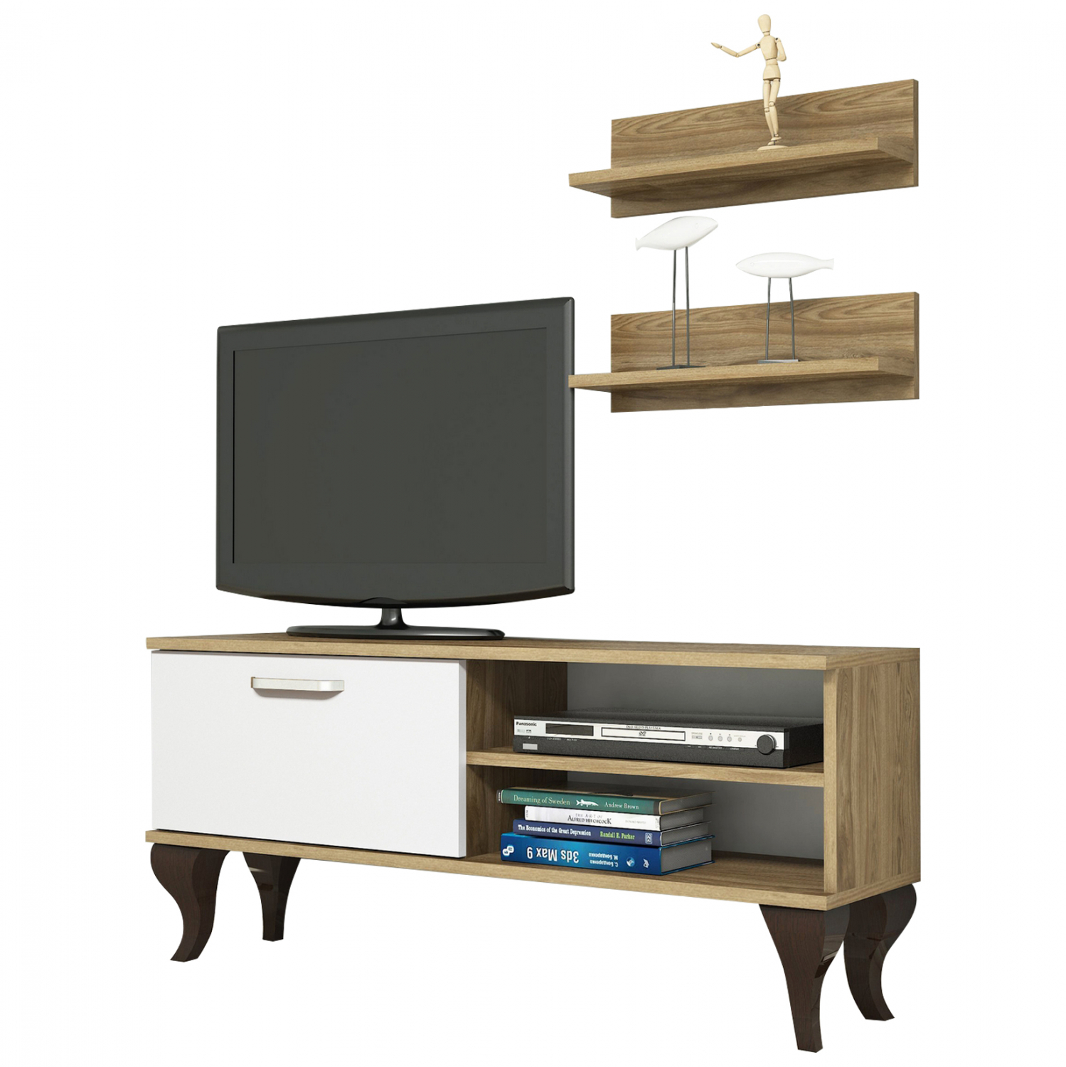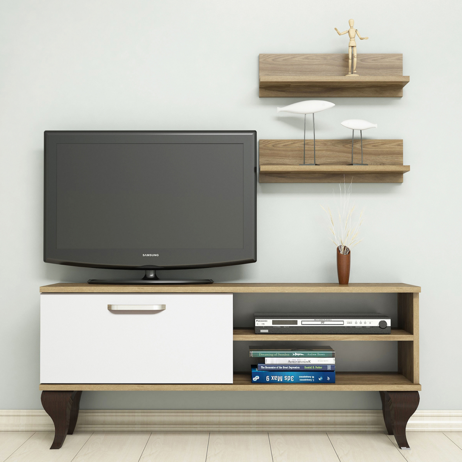 Σύνθεση τηλεόρασης σε απόχρωση καρυδί με λευκό 120x30x51,6Y εκ.