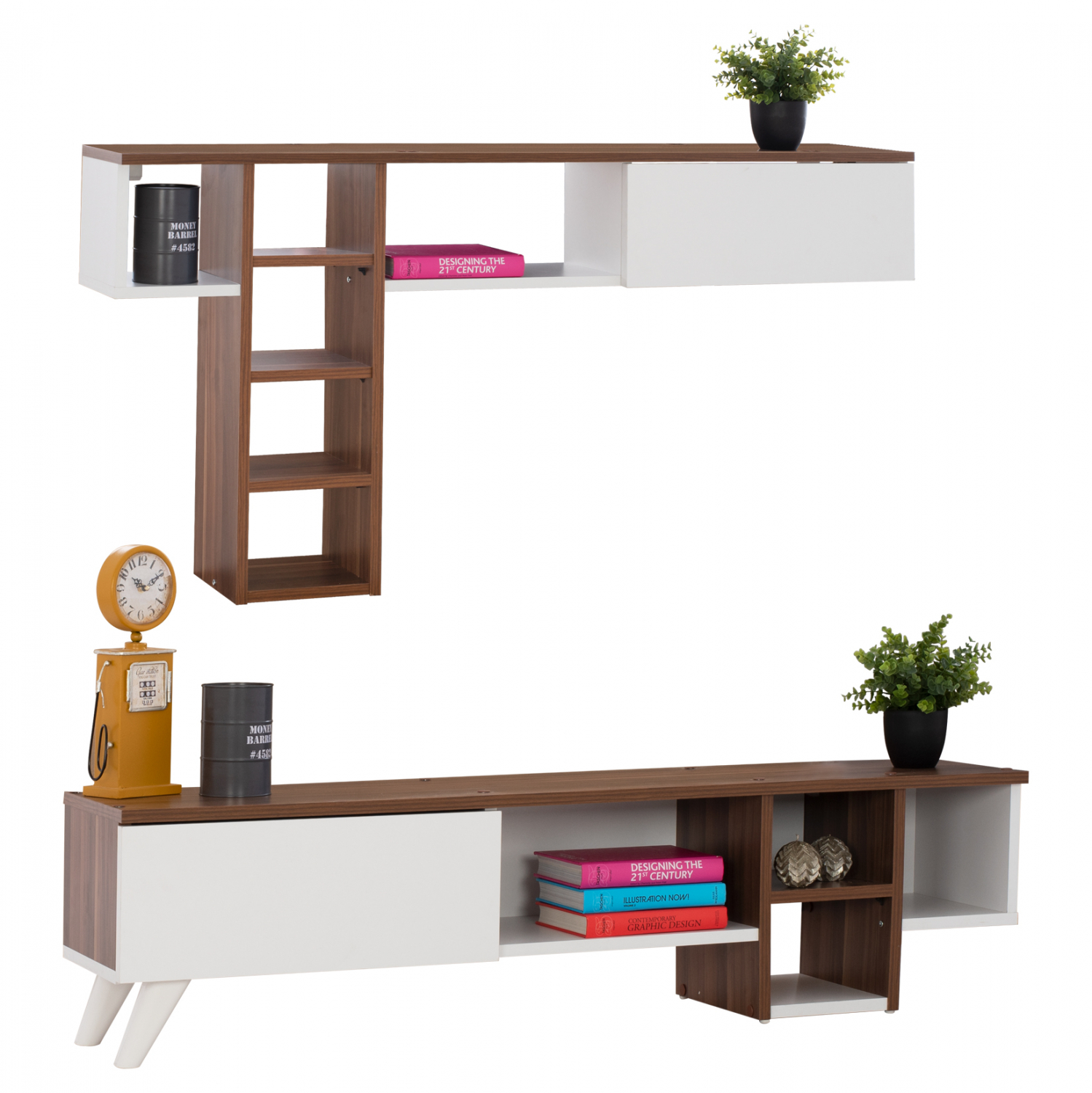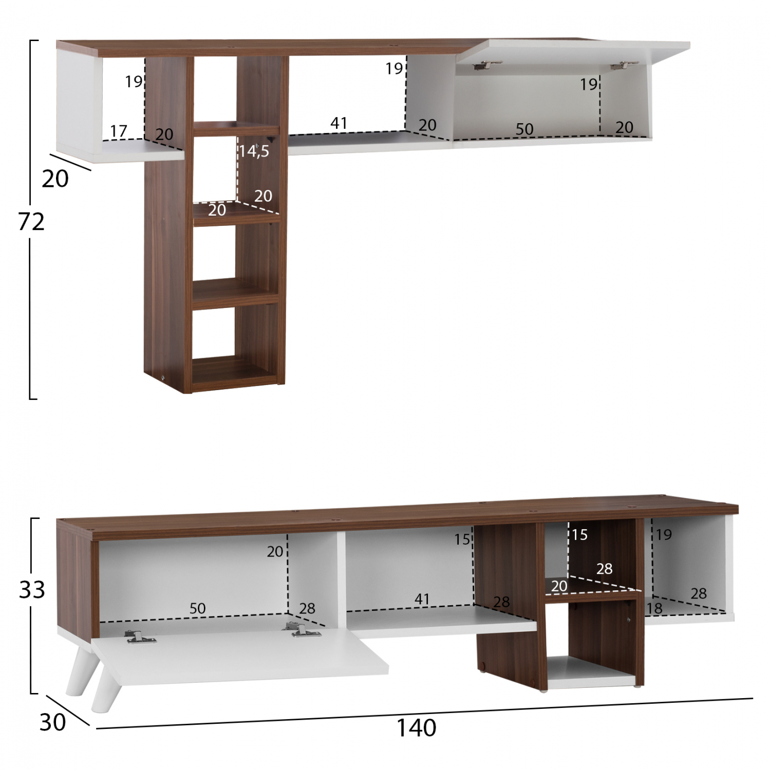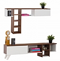 Σύνθετο τηλεόρασης σε λευκή με καρυδί απόχρωση 140x30x33 εκ.