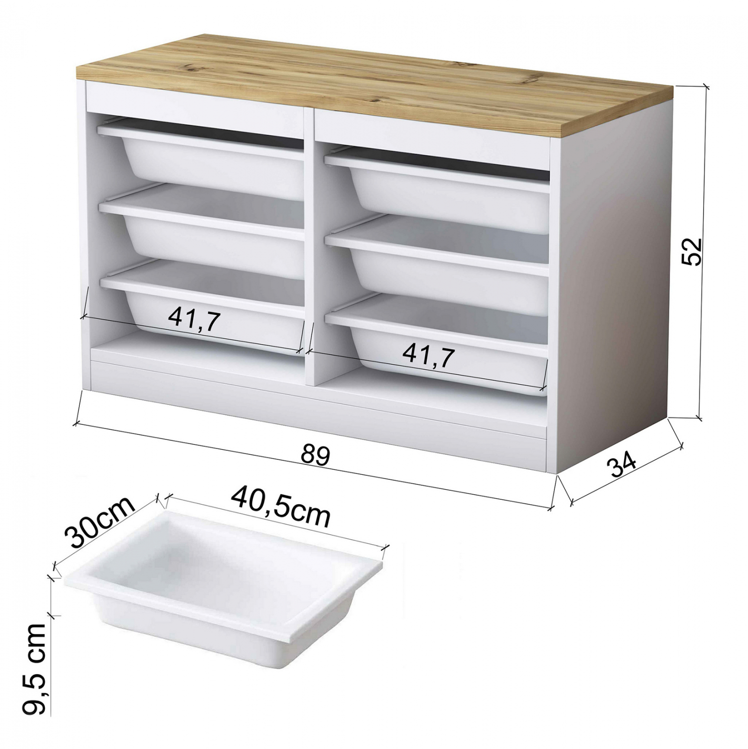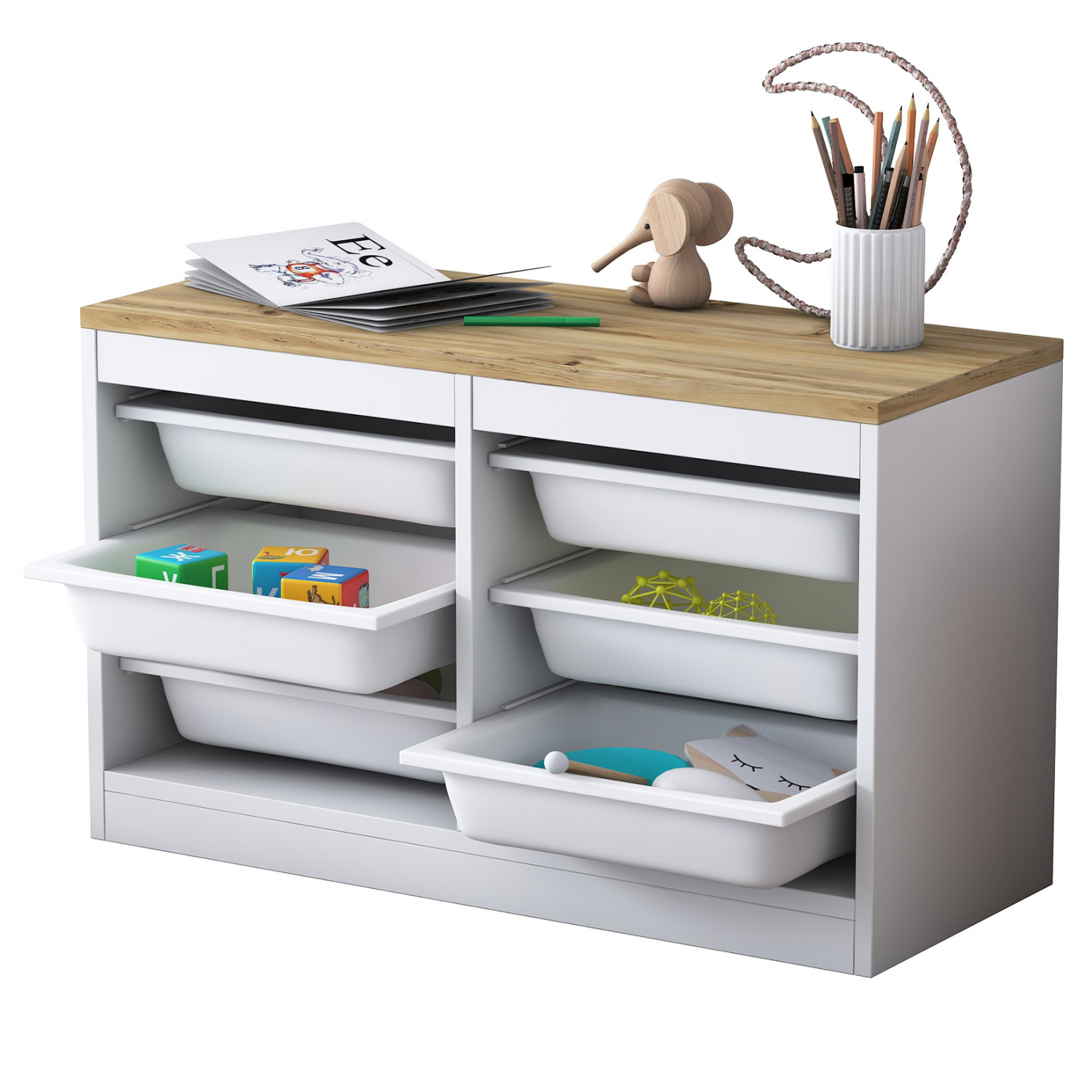 Συρταριέρα με 6 ανοιχτά συρτάρια. Κατασκευασμένη από μελαμίνη άριστης ποιότητας πάχους 18mm. σε λευκή απόχρωση με επιφάνεια σε δρυς απόχρωση.