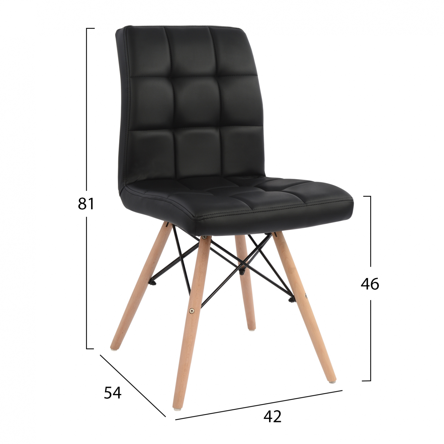 Η κατασκευή της είναι από ξύλινα πόδια και μαύρη δερματίνη PU.