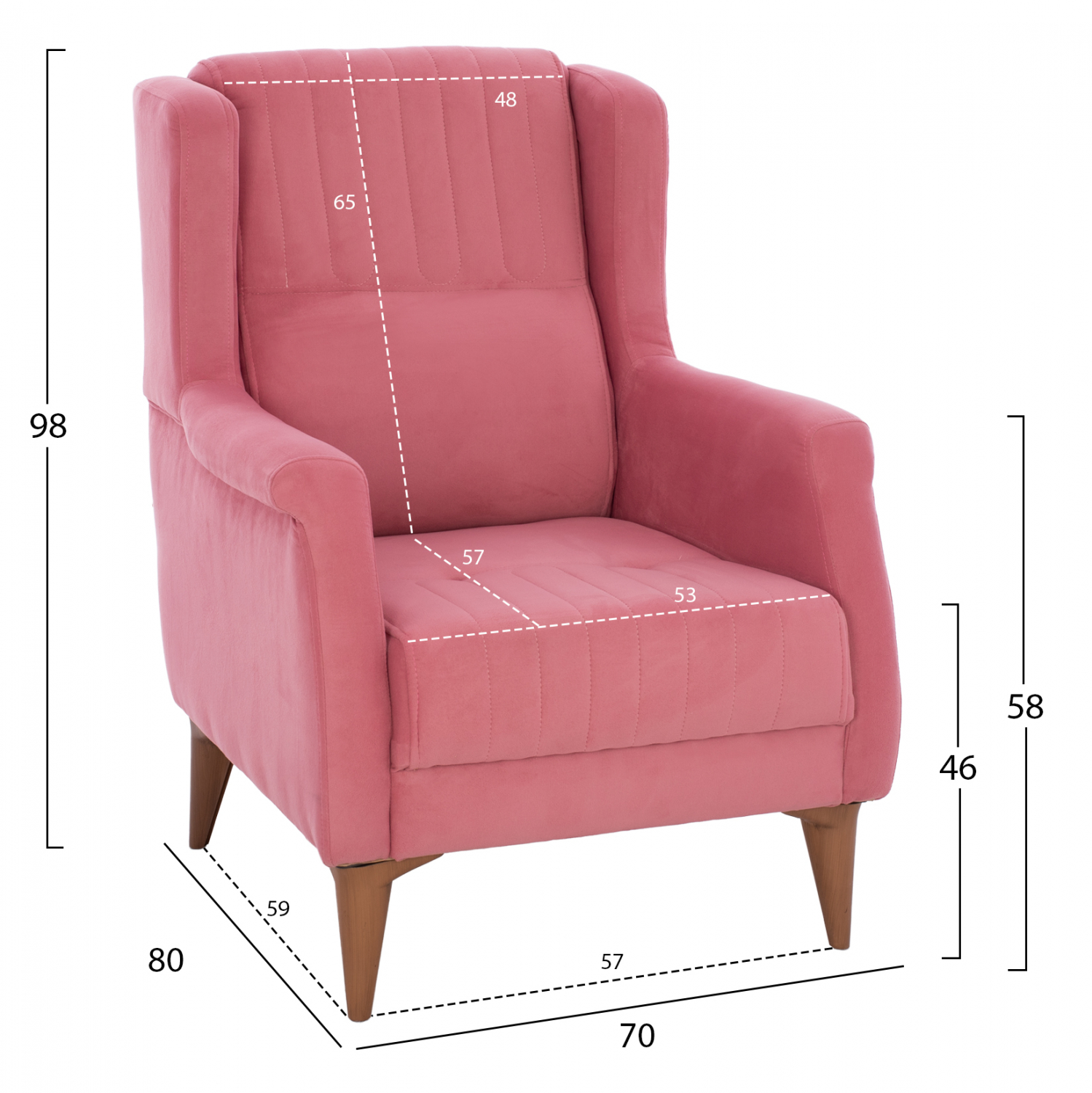 Ολόκληρη η επένδυση της μπερζέρας έχει γίνει με εξαιρετικής ποιότητας βελούδινο ύφασμα, χαρίζοντας ελκυστική όψη και μια εκλεπτυσμένη γοητεία στην διακόσμηση του σαλονιού σας. Το βελούδο είναι το ύφασμα που δεν μπορεί να αφήσει κανέναν ασυγκίνητο! Είτε καλύπτει μικρές είτε μεγάλες επιφάνειες, δεν μπορεί παρά να κάνει την παρουσία του αισθητή στο χώρο και να μαγνητίσει τα βλέμματα. Το βελούδο είναι ένα ύφασμα που αγαπήθηκε ιδιαιτέρως από τους βασιλείς και τους αυτοκράτορες των περασμένων αιώνων, με αποτέλεσμα να γίνει συνώνυμο της πολυτέλειας και της αίγλης. Έχει κατακλύσει τις βιτρίνες των μεγαλύτερων καταστημάτων και αποτελεί μία από τις πιο αγαπημένες επιλογές των πιο επώνυμων διακοσμητών παγκοσμίως. Πρόκειται για ένα ύφασμα απαλό, χαλαρό, απολαυστικό και φινετσάτο που είναι αδύνατον να του αντισταθεί κάποιος. Το θετικό είναι ότι μπορεί να εναρμονιστεί εύκολα με κάθε είδος διακόσμησης, προσδίδοντας στο χώρο φινέτσα και καλαισθησία.