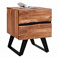Κομοδίνο από μασίφ ξύλο Ακακίας σε φυσική απόχρωση και μεταλλικά πόδια σε μαύρο χρώμα.