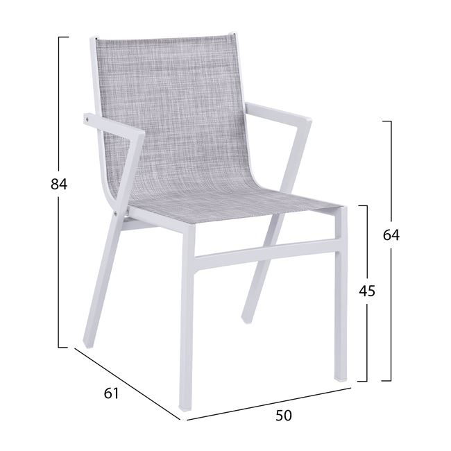 επαγγελματικών προδιαγραφών με λευκό σκελετό και κάθισμα από γκρι textilene.