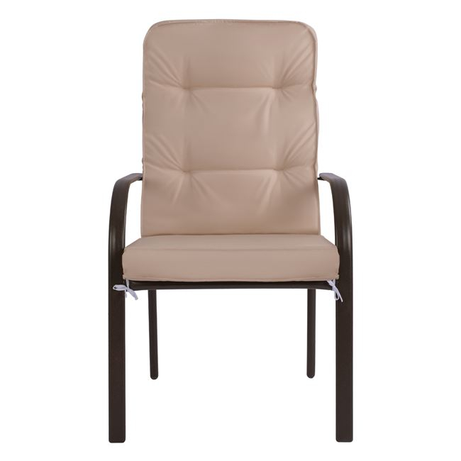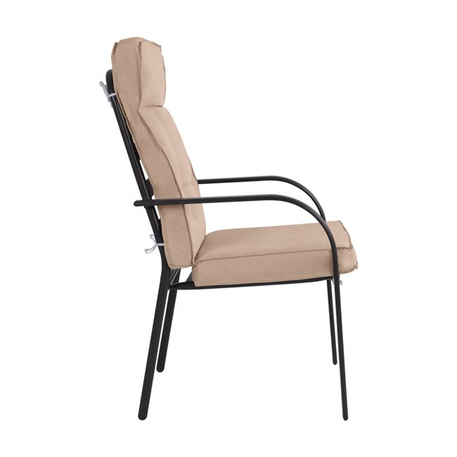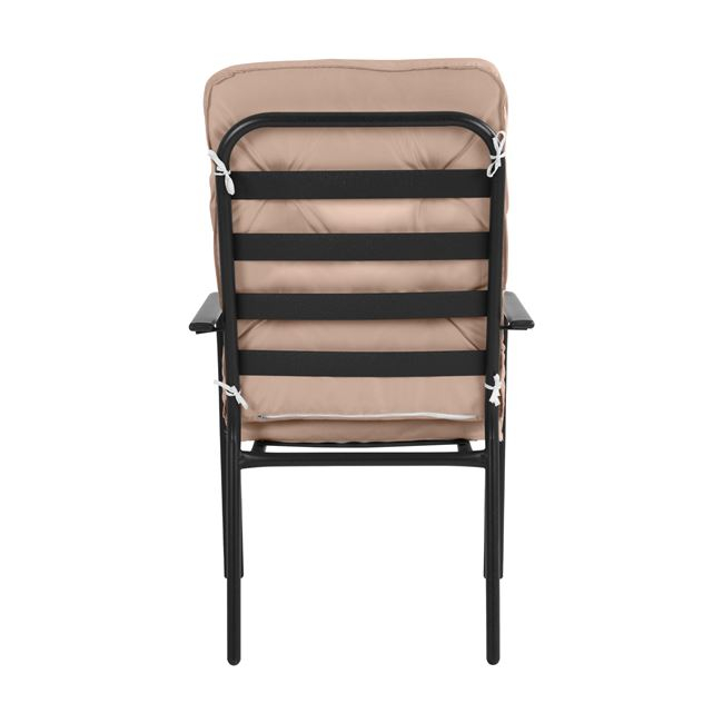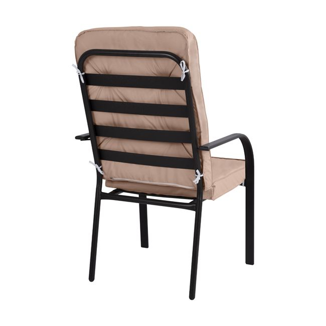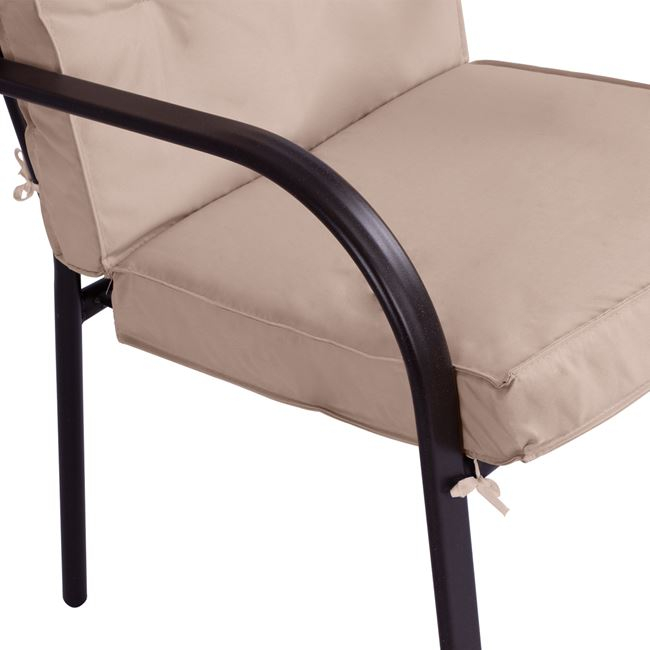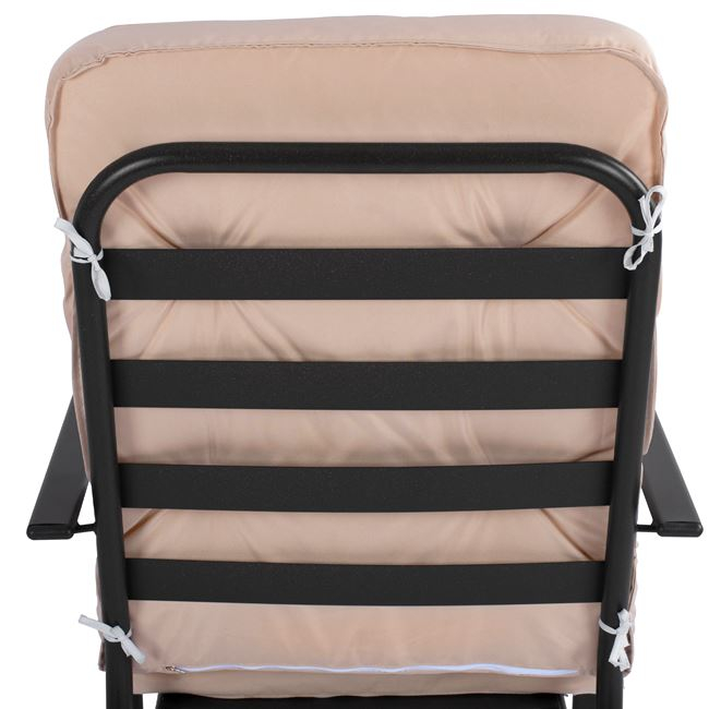 Διαθέτει μαξιλάρι σε μπεζ απόχρωση, με φερμουάρ για την πλάτη και το κάθισμα, πάχους 8 εκ.