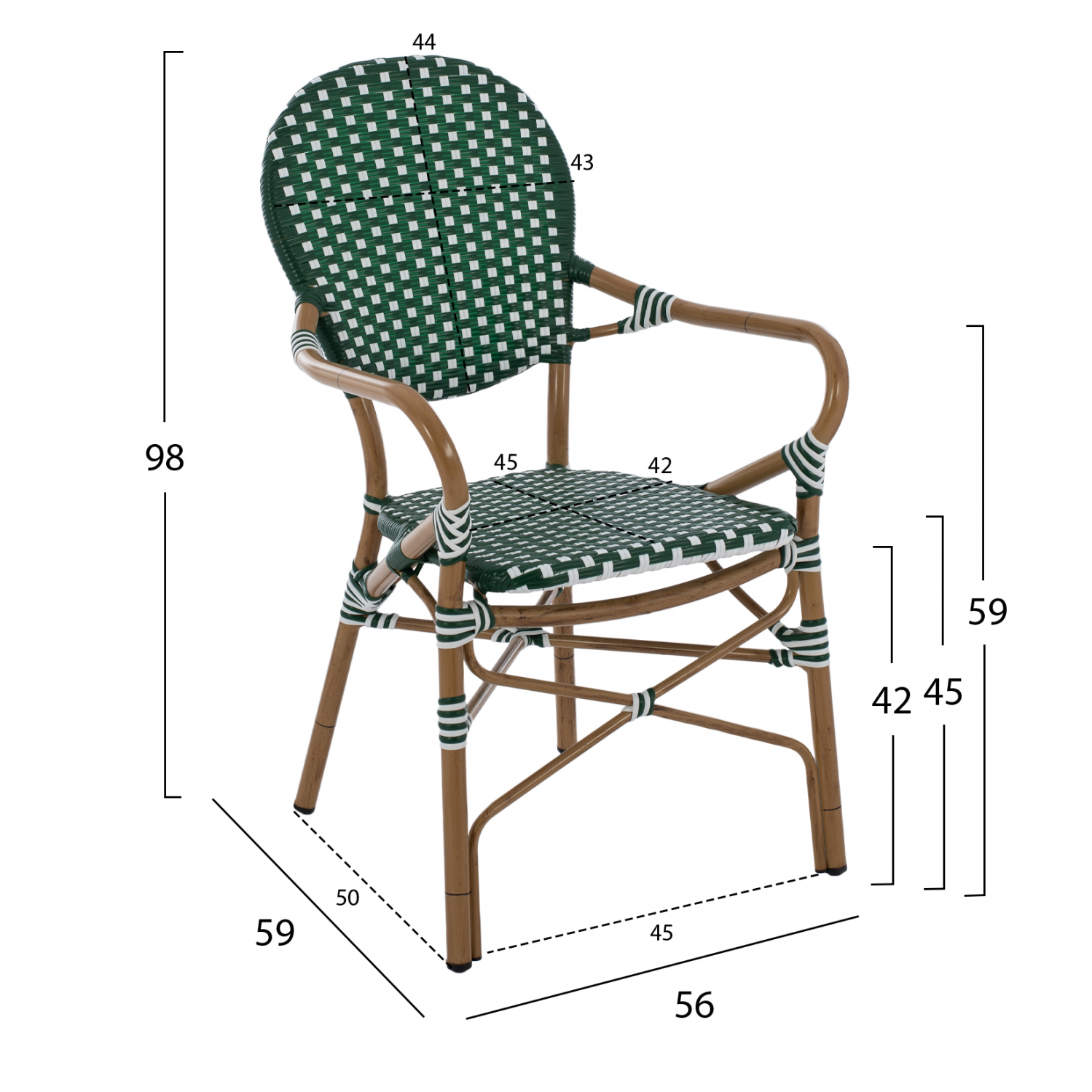 ΠΟΛΥΘΡΟΝΑ ΑΛΟΥΜΙΝΙΟΥ BAMBOO LOOK ΜΕ WICKER ΛΕΥΚΟ ΠΡΑΣΙΝΟ FB95793.01 56x59x98 εκ.
