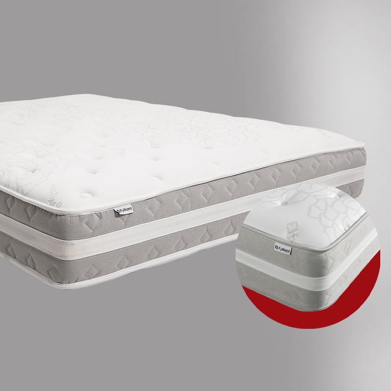 Ελατήρια pocket υψηλής ποιότητας 7 ζωνών, με περιμετρικές κολώνες στήριξης, περιμετρικών λαμών και 4 εργονομικών υλικών σε κάθε πλευρά. Στρώμα δύο εποχών με δύο όψεις, η μια πλευρά είναι μάλλινη, ιδανική για τον χειμώνα και η άλλη βαμβακερή, ιδανική για το καλοκαίρι.